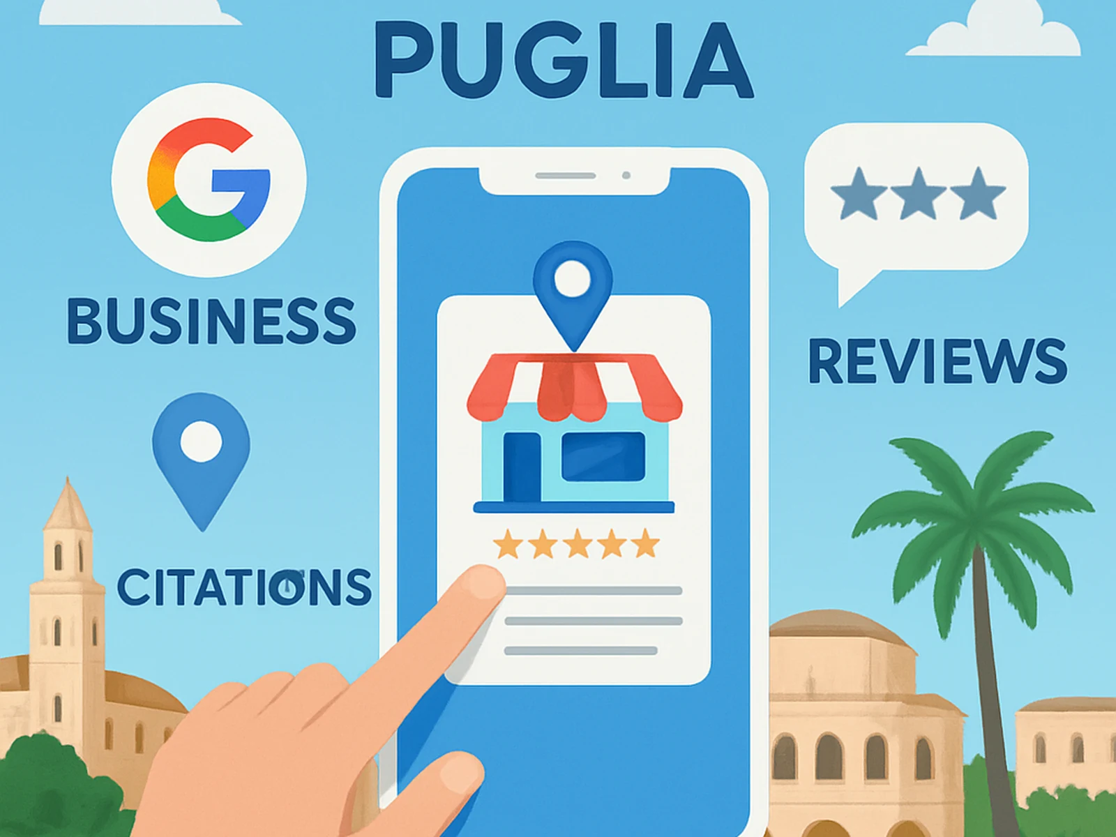 Google Business, citations, reviews — dominate local search in Bari, Puglia, and Southern Italy.
